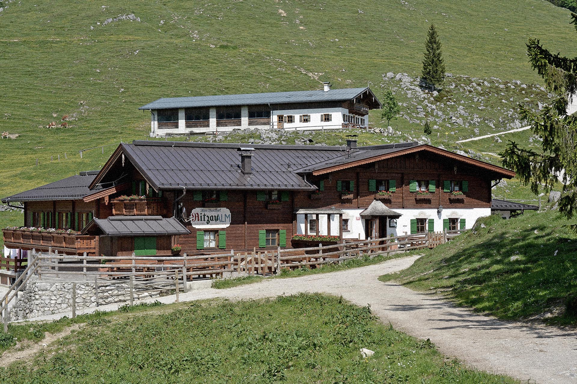 Rund um unseren Berggasthof laden bei schönem Wetter Tische und Bänke zum Verweilen ein. Genießen Sie auf unserer Terrasse die wunderschöne Aussicht und lassen Sie sich von uns mit hausgemachten Kuchen, Wildspezialitäten aus eigener Jagd und Gerichten vom Almochsen verwöhnen. Ideal auch für Bergtouren.